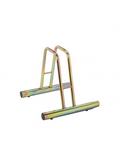 Stalak za bicikle na tlu visoki. 1 mjesto u pocinčanom čeliku zlatne boje s mogućnošću spajanja u niz. Sa nogicama Dimenzije: