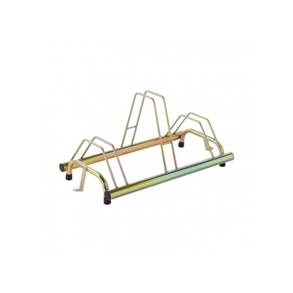 Stalak za bicikle na tlu. 3 mjesta, pocinčani, zlatni sa nogicama Dimenzije: dužina :79cm širina :42 cm visina : 40 cm težina : 5 kg jednostavna ambalaža, u slučaju kutije ili drugog, posebno ćemo navesti