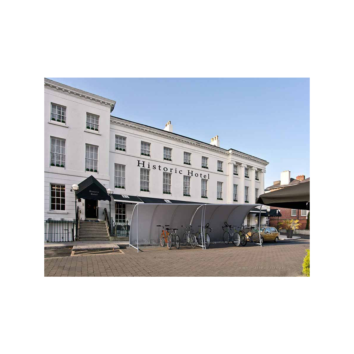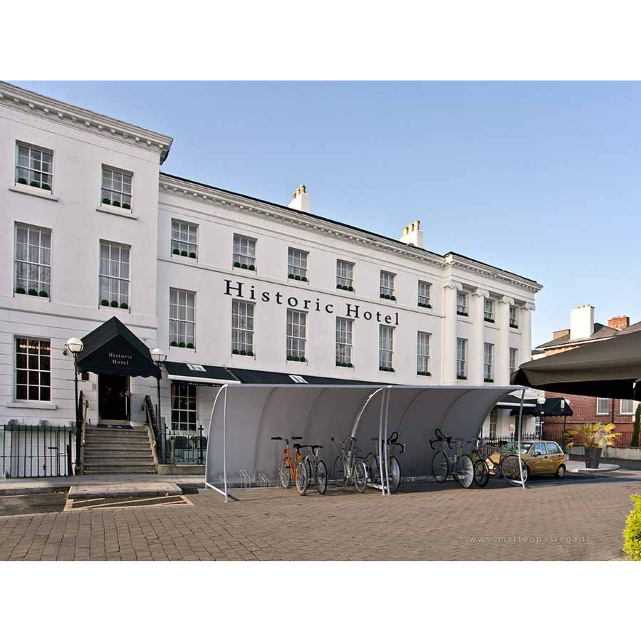 Garaža za bicikle. Pocinčane strukture sa vijcima od nehrđajućeg čelika. Dostavljena u dijelovima. Mogućnost stavljanja slika na bočne strane Dimenzije: