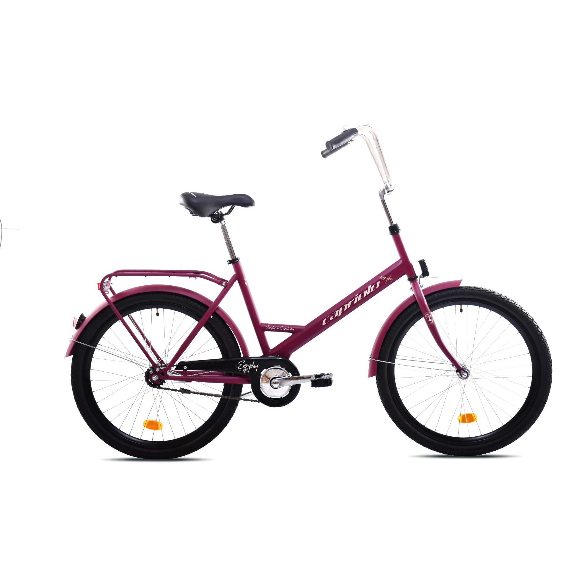 Capriolo Every Day je jednostavan i praktičan gradski bicikl — dizajniran za svakodnevnu vožnju po gradu, za posao, fakultet, dućan ili ležerne izlete. Njegov kompaktan, čelični okvir i klasična geometrija čine ga laganim za upravljanje i idealnim za one koji žele pouzdan i nepretenciozan bicikl bez pretjeranih zahtjeva.