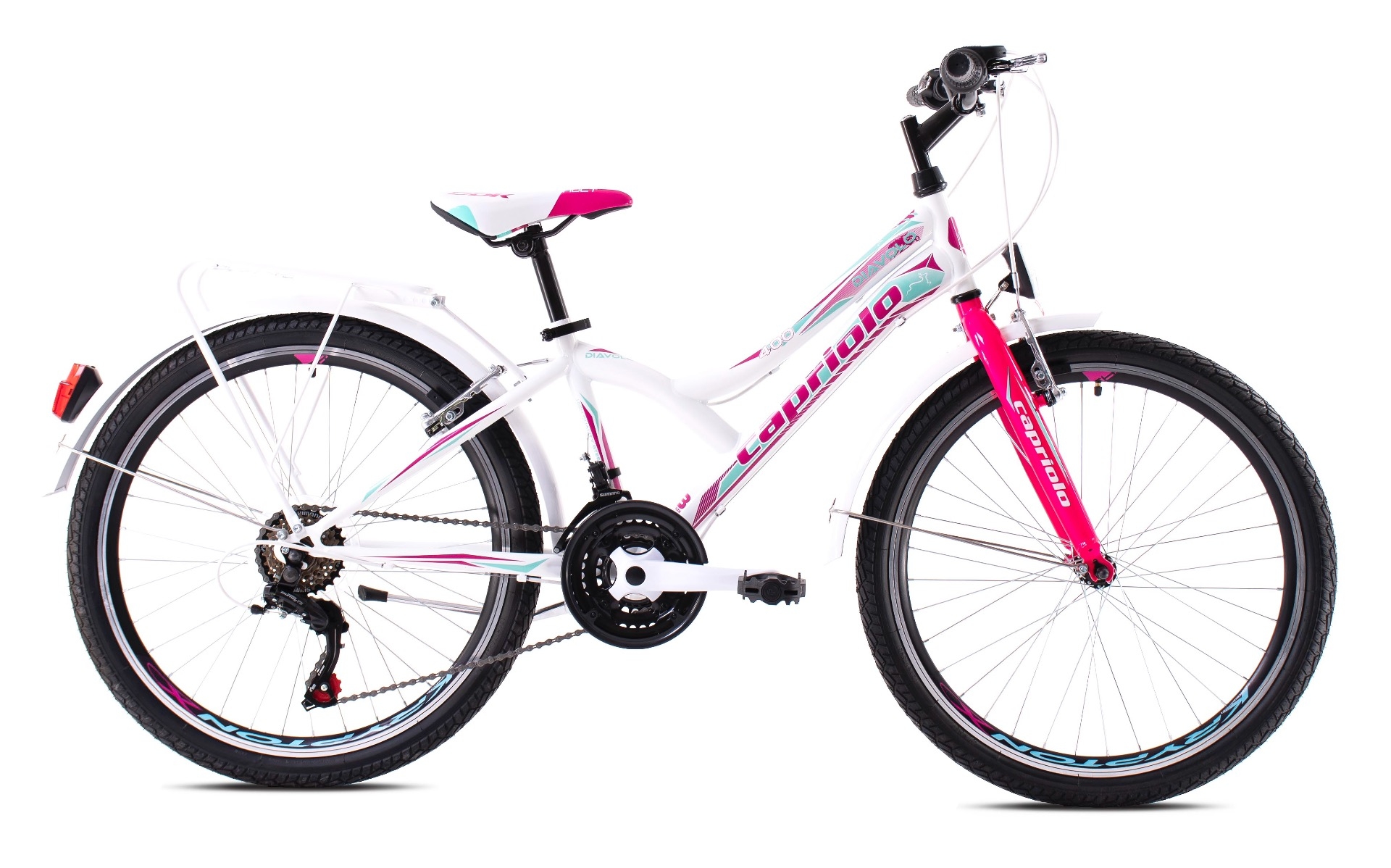 MTB DIAVOLO 400 CITY nova je serija dječjih MTB od Capriola sa dodatnom opremom. MTB DIAVOLO 400 CITY opremljen je prednjim i zadnjim 18-brzinskim SHIMANO TURNEY mjenjačem. Namijenjen za vožnju gradom, DIAVOLO 400 CITY opremljen je dodatano sa prednjim i zadnjim blatobranom koja imaju integrirana prometna svijetla.