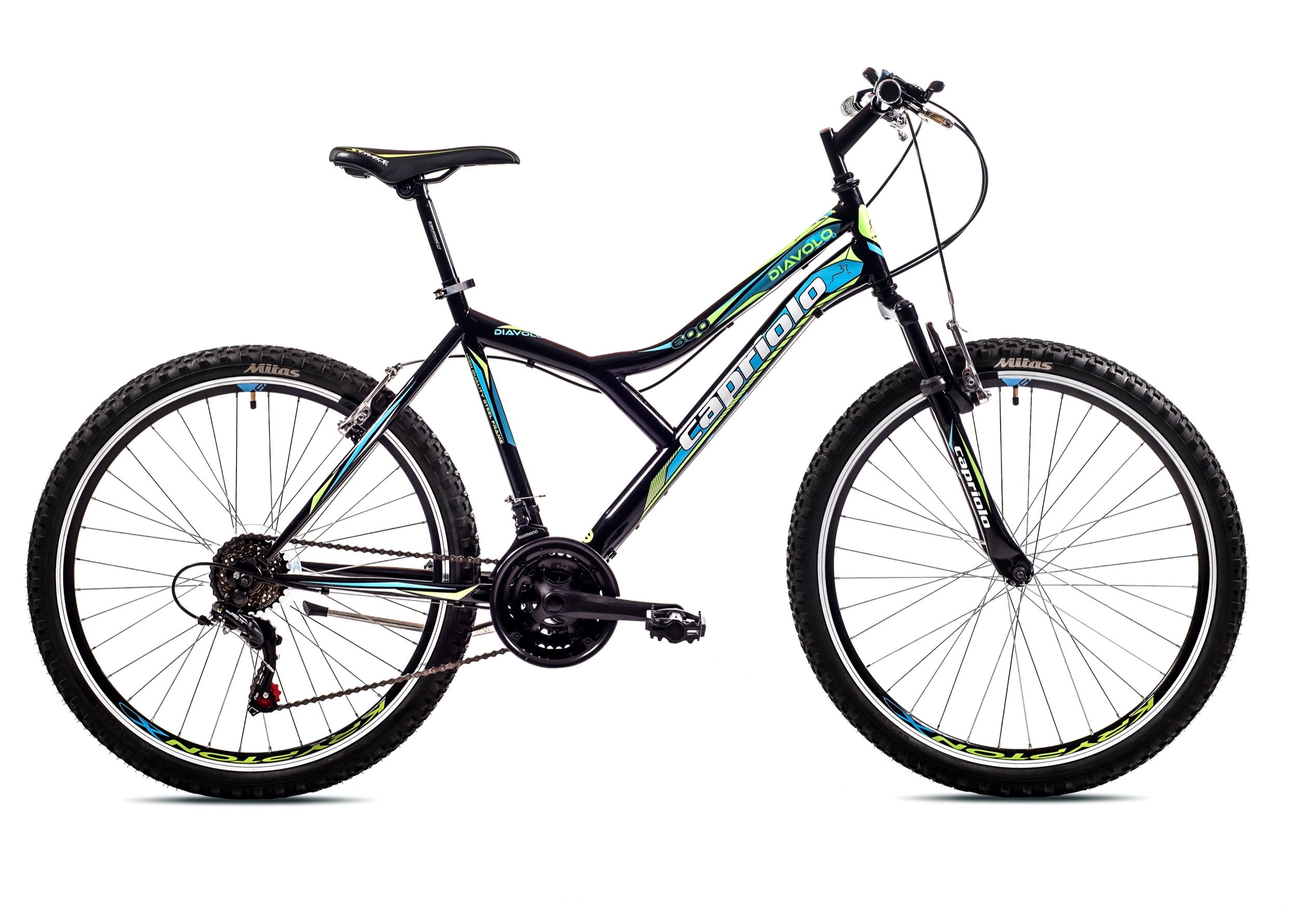MTB DIAVOLO 600 FS novi je model MTB od Capriola. DIAVOLO je opremljen prednjim i zadnjim SHIMANO TOURNEY mjenjačem sa 18 brzina. Udoban i siguran, idealna za vožnju gradom i offroad stazama.