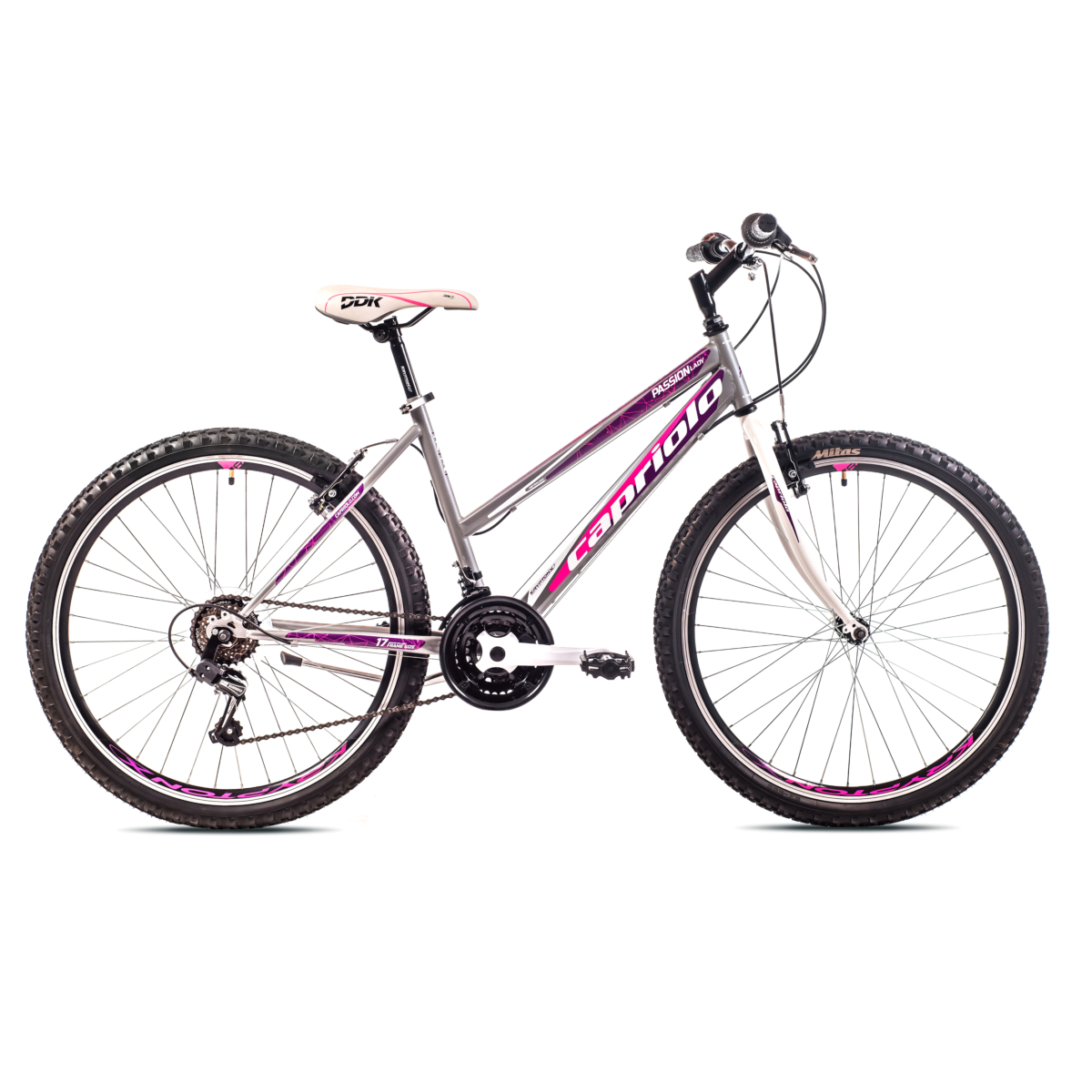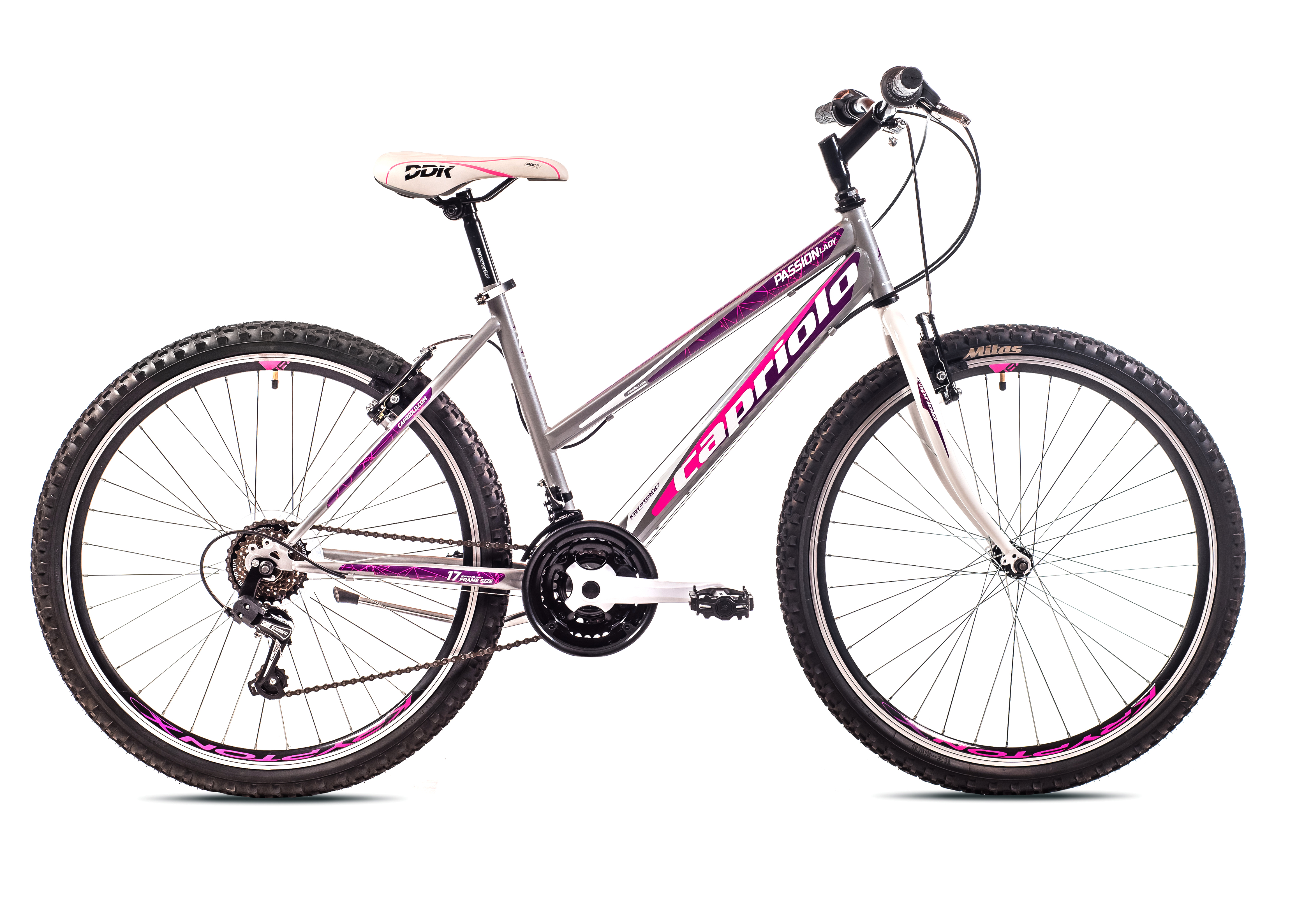 MTB PASSION LADY novi je model ženskih MTB bicikala od Capriola. Jedan od najprodavanijh modela Capriolo bicikala je upravo Passion serija, serija koja je po svim karakteristikama namijenjena ženama. PASSION LADY opremljen je prednjim i stražnjim 18-brzinskim SHIMANO TOURNEY mjenjačem. Udoban i siguran, idealan za vožnju gradom i po prirodi.