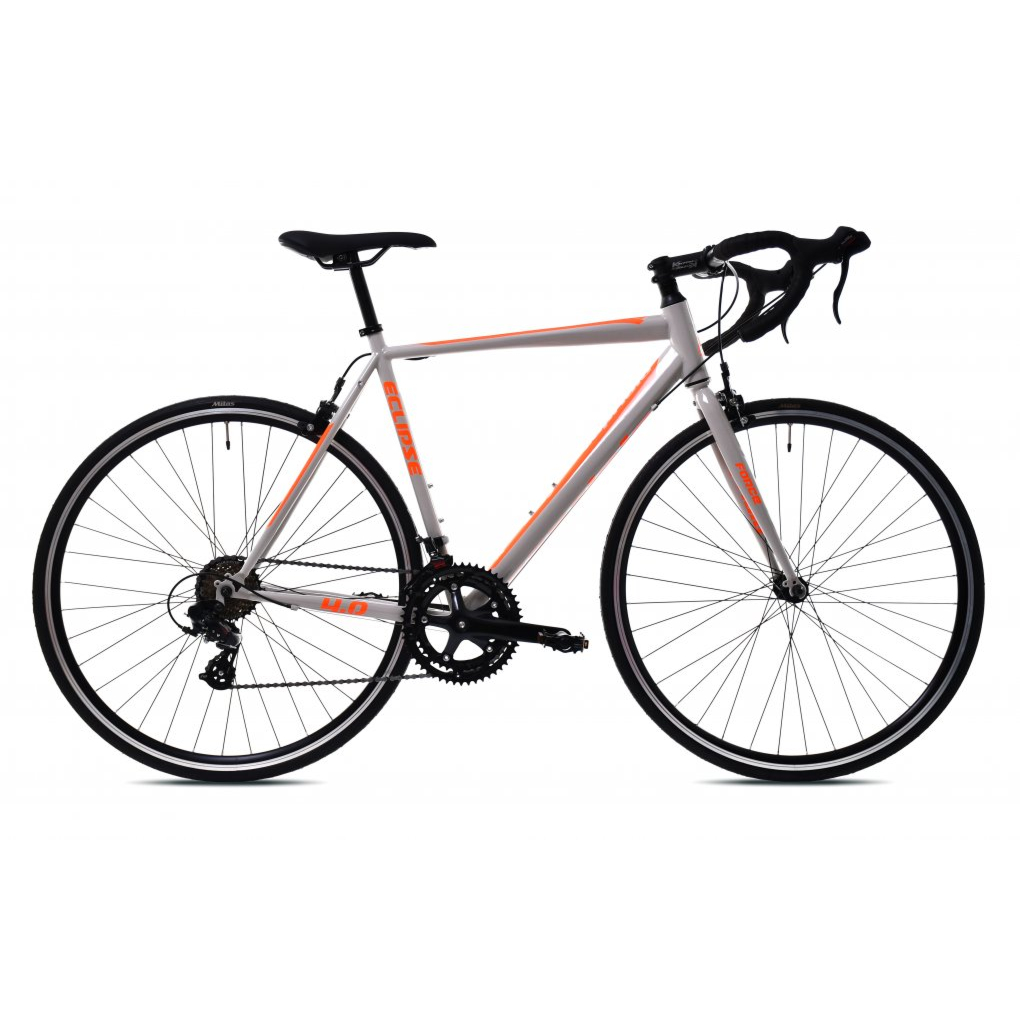 Cestovna bicikla Capriolo Eclipse 4.0 je bicikla koja će zadovoljiti svakog biciklistu početnika koji skuplja kilometre i iskustvo na cestovnom biciklu. Druga prednost pri kupnji Capriolo Eclipse 4.0 je što nije potrebno uložiti puno novca u svoj prvi bicikl. Veličina rame 28”. Shimano mjenjač prednji i zadnji, vilica Rigid steel fork, pogon 52tx42t KX170 mm sasvim su dovoljni za prva iskustva.