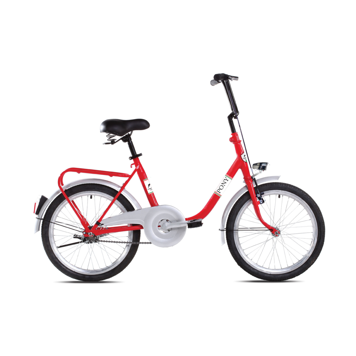 CTB PONY ima SINGLE SPEED sistem što znači da nema mjenjač te za prednju kočnicu ima postavljen V-BRAKE sistem, a za zadnju kočnima ima postavljen COASTER tj. koči se sa pedalama (kontra-pedala) Bicikl je opremljen prednjim i zadnjim blatobranima, prometnim prednjim i zadnjim svijetlima.