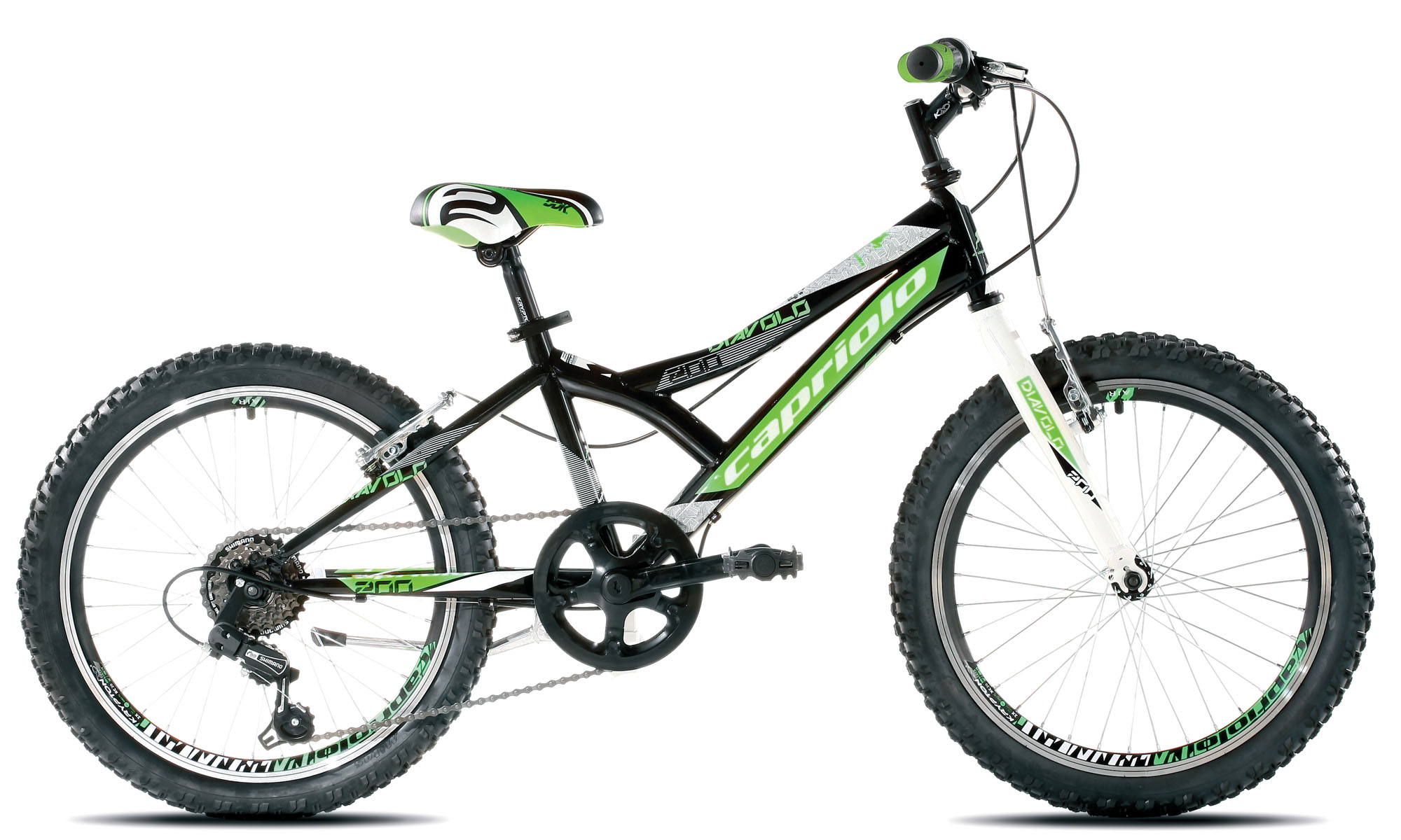 MTB DIAVOLO 200 nova je serija dječjih MTB od Capriola. MTB DIAVOLO 200 je opremljen stražnjim 6-brzinskim SHIMANO TURNEY mjenjačem.