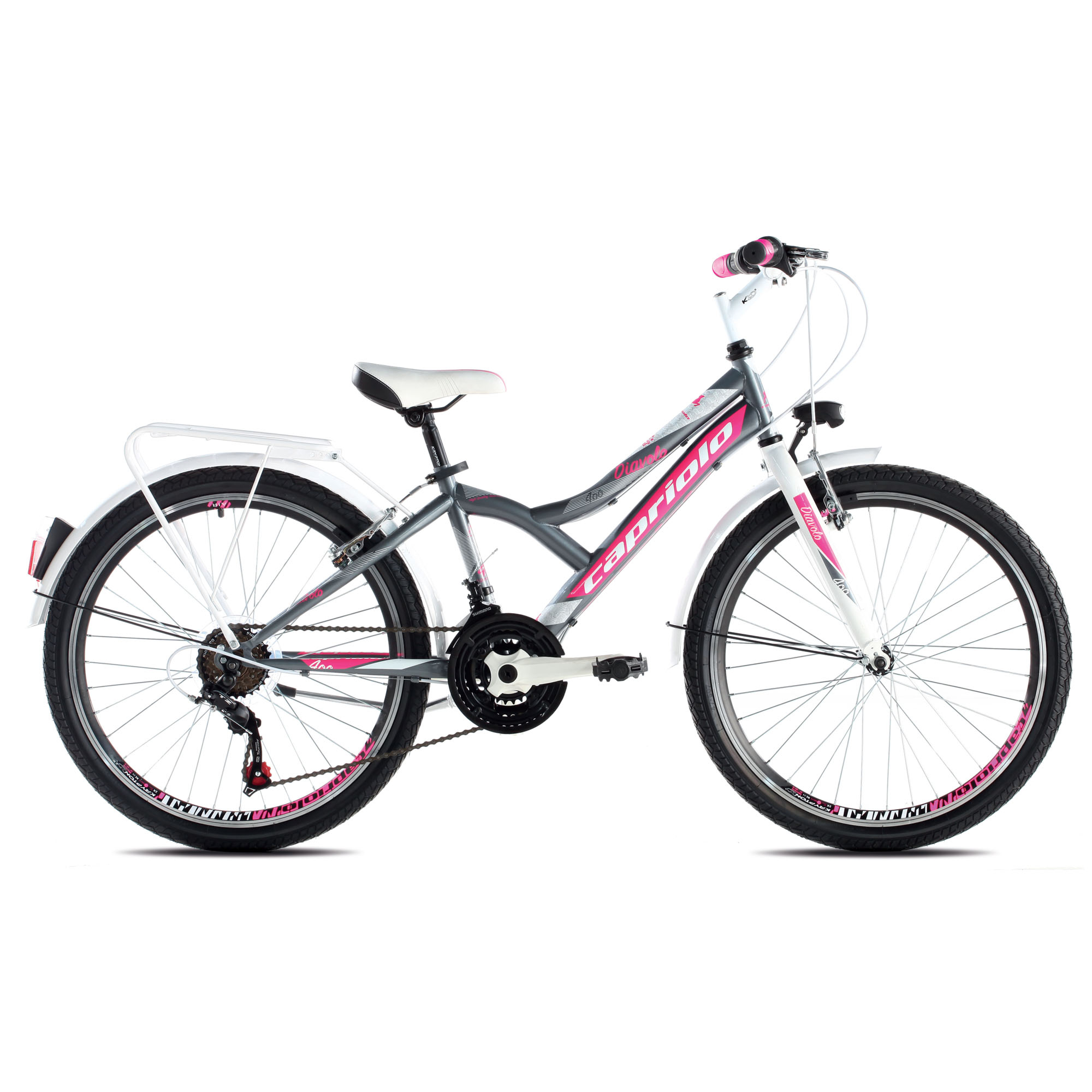 MTB DIAVOLO 400 CITY nova je serija dječjih MTB od Capriola sa dodatnom opremom. MTB DIAVOLO 400 CITY je opremljen prednjim i zadnjim 18-brzinskim SHIMANO TURNEY mjenjačem. Namjenjen za vožnju gradom, DIAVOLO 400 opremljen je dodatano sa prednjim i zadnjim blatobranom koja imaju integrirana prometna svijetla.