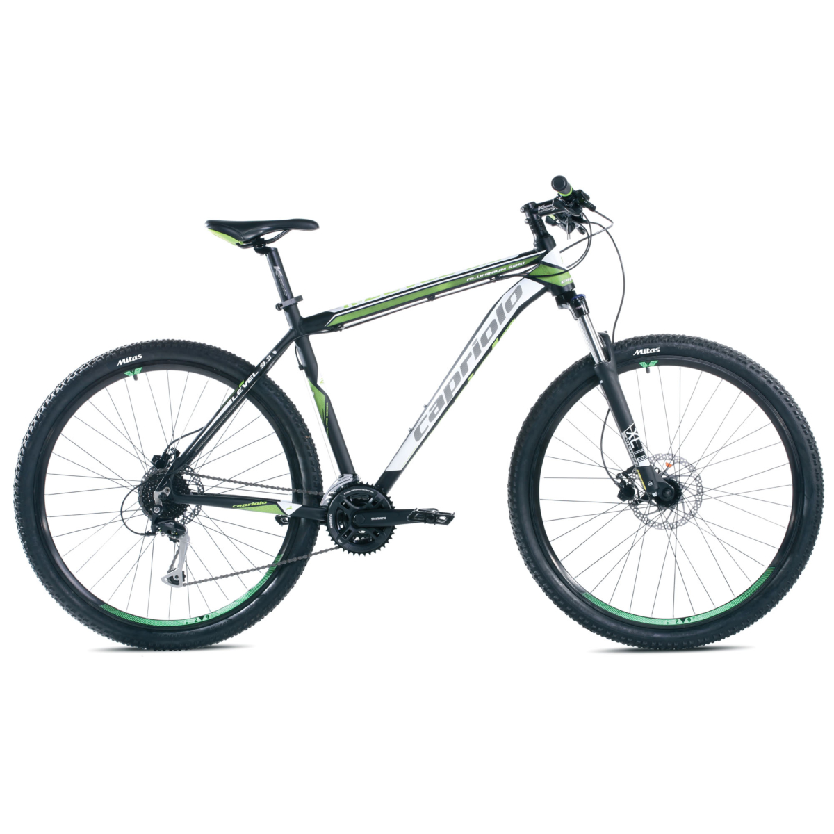 Bicikl je ponuđen sa stražnjim mjenjačem SHIMANO ALIVIO ukupno 24 brzina. LEVEL 9.3 bicikl je opremljen hidrauličkim kočnicama i 100 mm ovjesnim vilicama SUNTOUR XCT s funkcijom zaključavanja. Vilica s većim hodom odgovara širokom rasponu uporabe. Atraktivni dizajn i grafike svakako doprinose tome da ovaj bicikl bude središte pozornosti kod vožnje. Udobnost i prilagodljivost dio su svakog Capriolo Level okvira bicikla, a Vama nude izvrsnu off-road vožnju kao i natjecateljsku XC vožnju.