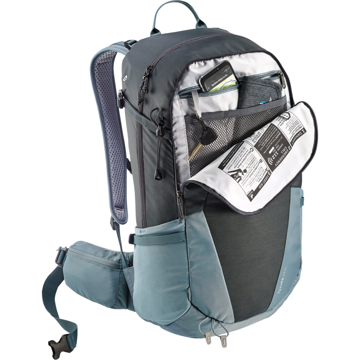 Lagani, tehnički planinarski ruksak Futura EL dizajniran je za više osobe (> 185 cm). Sustav izrade na leđa Air comfort izuzetno je udoban, a mreža stvara maksimalni protok zraka po leđima. Rezultat je 25% manje znojenja i dužim zadržavanjem visoke energije. Prednji džep od rastezljive mreže odličan je za prozračivanje mokre odjeće u pokretu (npr. nakon brzog uranjanja u planinski potok). Sigurnosni džep s patentnim zatvaračem. Podesivi pojas s kopčom na prsnoj kosti. Nosač za štapove za hodanje.