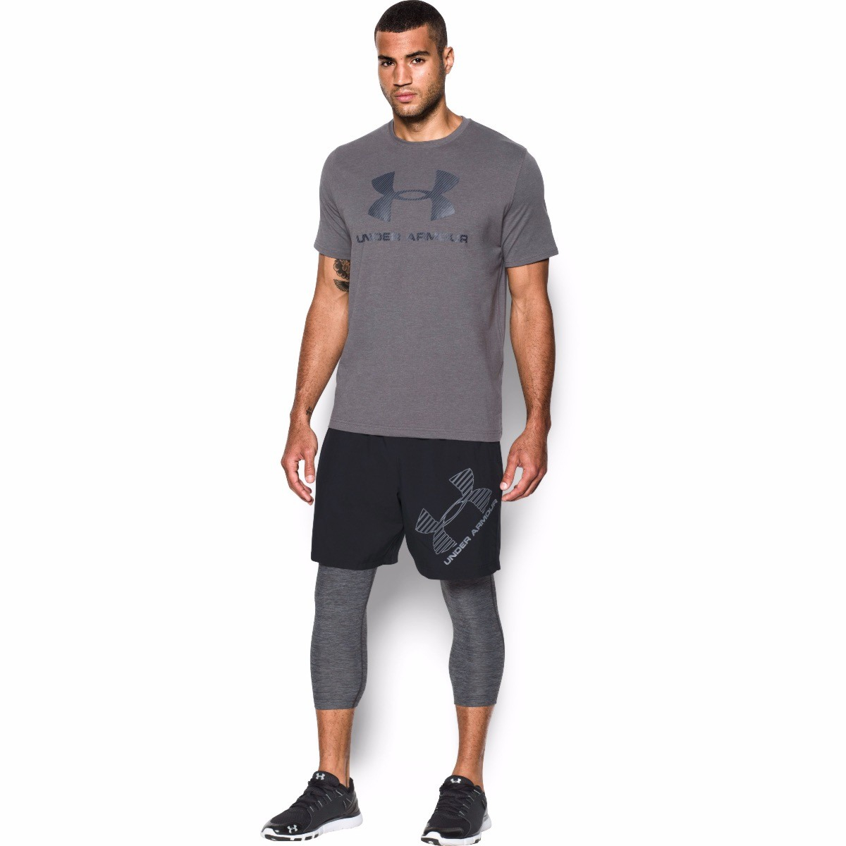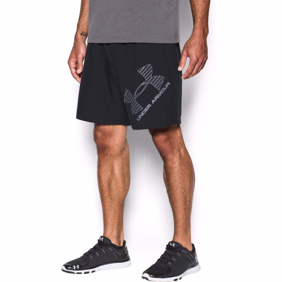 Muške sportske hlače. Izrađene od lagane, prozračne i izdržljive tkanine. Mekana četverosmjerno rastezljiva tkanina s mrežastim panelima koja sprječava rast mikroba koji uzrokuju neugodne mirise. Materijal dobro upija znoj i brzo se suši. Gornji sloj tkanine odbija vodene kapi. Elastični pojas. Natpis UNDER ARMOUR na nogavici.